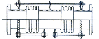 大拉桿橫向型波紋補(bǔ)償器可以補(bǔ)償彎曲管段的橫向位移和量值不大的角位移,通常不用來(lái)補(bǔ)償角位移。該補(bǔ)償器由接管、二個(gè)波紋管以及大拉桿等零件構(gòu)成。它能吸收管系任意平面內(nèi)的橫向位移。位移球面螺母繞球面墊圈轉(zhuǎn)動(dòng),同時(shí)拉桿還具有承受內(nèi)壓推力能力。