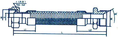 內(nèi)錐或球形接頭,公稱通徑20mm,公稱壓力16MPa,長度1500mm的金屬軟管,產(chǎn)品代號為16JRG20-1500